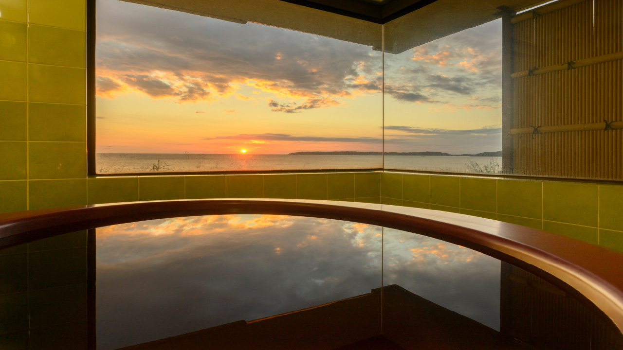 テラスの露天風呂では、海からの爽やかな潮風の中、光明石温泉の湯を愉しめます。