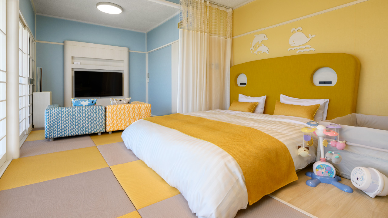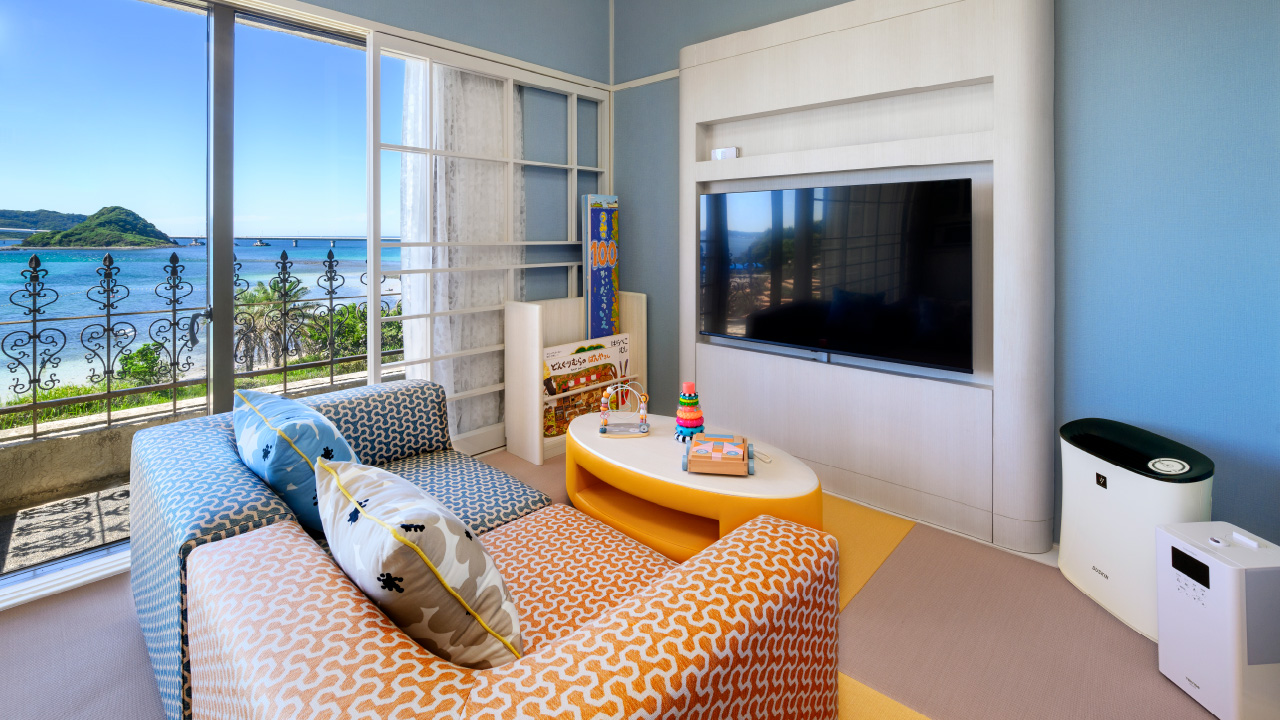 知育玩具やバストイ、絵本までそろった新しい「お子さま連れのファミリーのためのお部屋」で、旅の時間がもっとやさしく、楽しくなります。